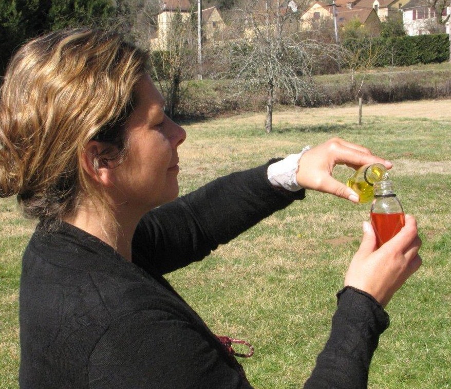 Ma rencontre avec la nature et les plantes s’est faite très jeune.Je vivais dans les bois avec ma grand-mère et mon frère, entourée de pins, de fougères, d’arbousiers, de chênes verts.Dans les dunes du littoral, je découvrais déjà l’Immortelle (Hélicrysum), cette petite fleur jaune aux parfums odorants utilisée pour les coups et hématomes.La curiosité de connaître et comprendre à quoi nous servent ses merveilleuses plantes qui nous entourent m’a amené à l’Ecole des plantes médicinales de Lyon en 1996. J’ai présenté mon mémoire en janvier 2000 sur « la grossesse harmonieuse ».